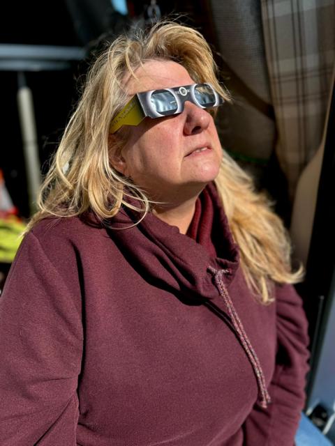 Incredible but true, after 2 days of rain and gloomy weather, there wasn’t a cloud in the sky today. The solar eclipse was visible from start to finish without even a hint of a cloud.