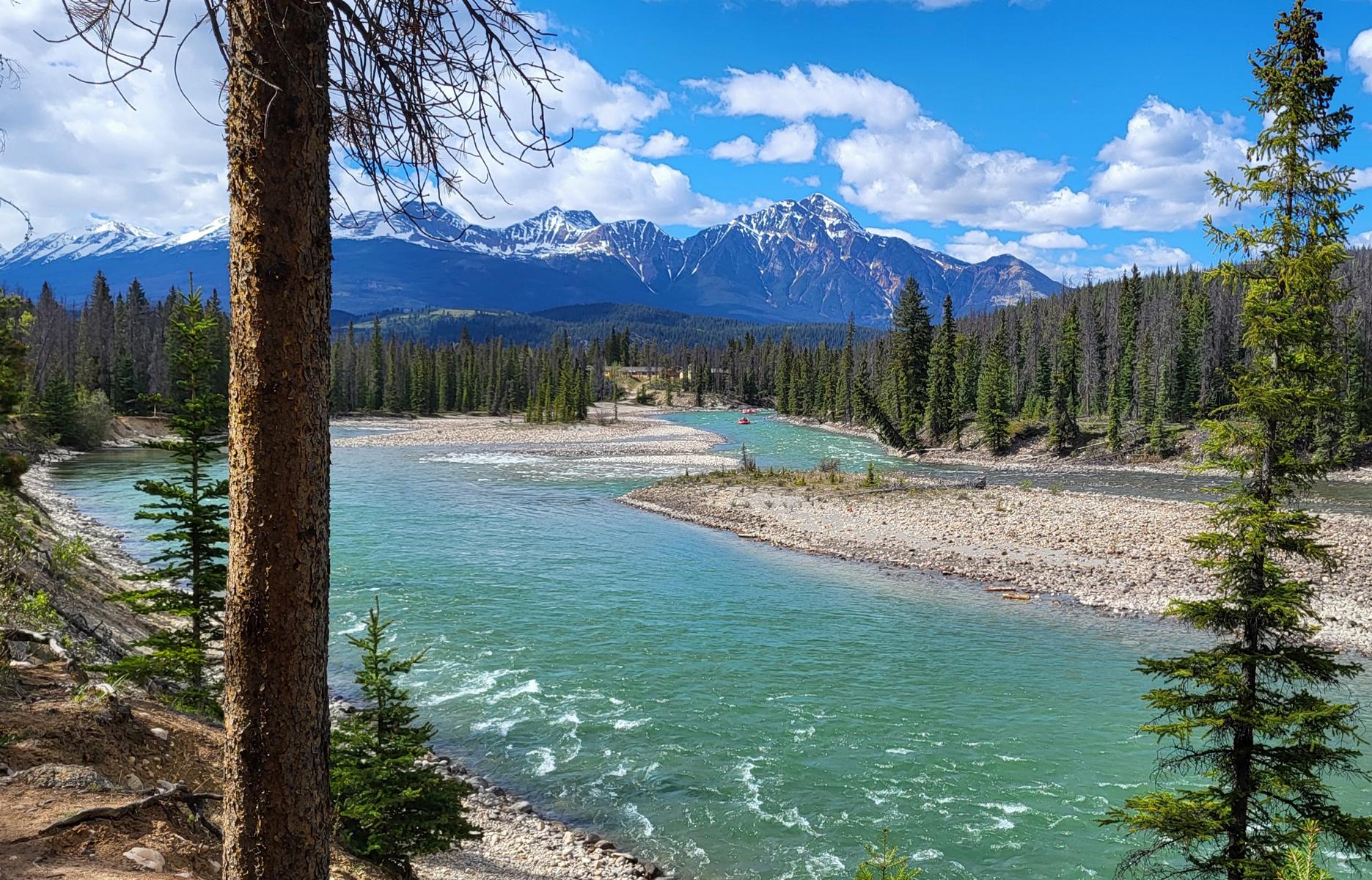 Auf seinem Weg von der Quelle bis zum richtig großen Fluss kann man den Athabasca River bis nach Jasper begleiten. Vom Gletscher durch die Athabasca Schlucht mit ihren Wasserfällen, bis hin zum Athabasca River, wo schon die ersten Rafting Boote fahren können.