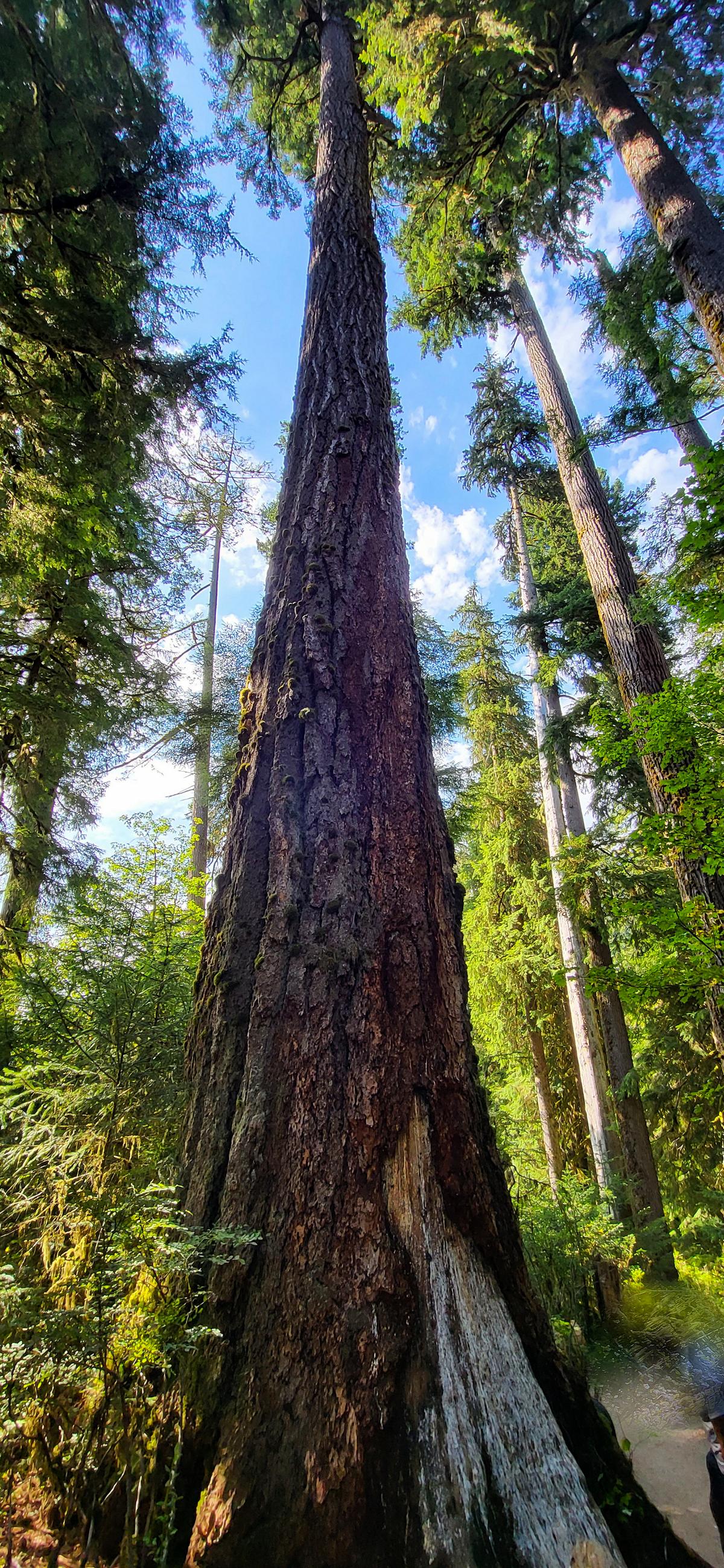 Unendlich hohe Bäume mit riesigem Durchmesser, überall Moos und Flechten, sodass kaum Licht auf den Boden fällt. So viel Grün und klare Bäche – ich war einfach begeistert. Würde es nicht so viel regnen, wäre das meine Gegend. Tatsächlich haben wir dann auch noch einen Platz auf dem Campground bekommen und konnten die Abendstimmung im fast menschenleeren Park genießen.