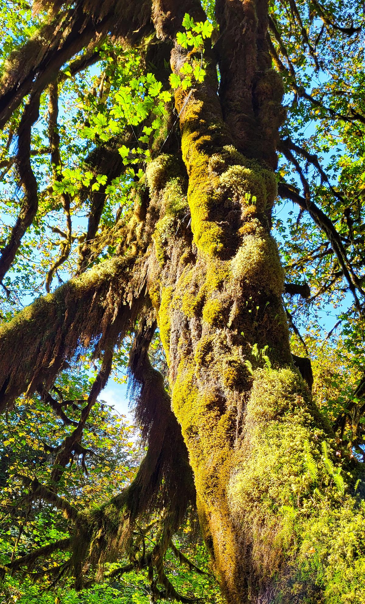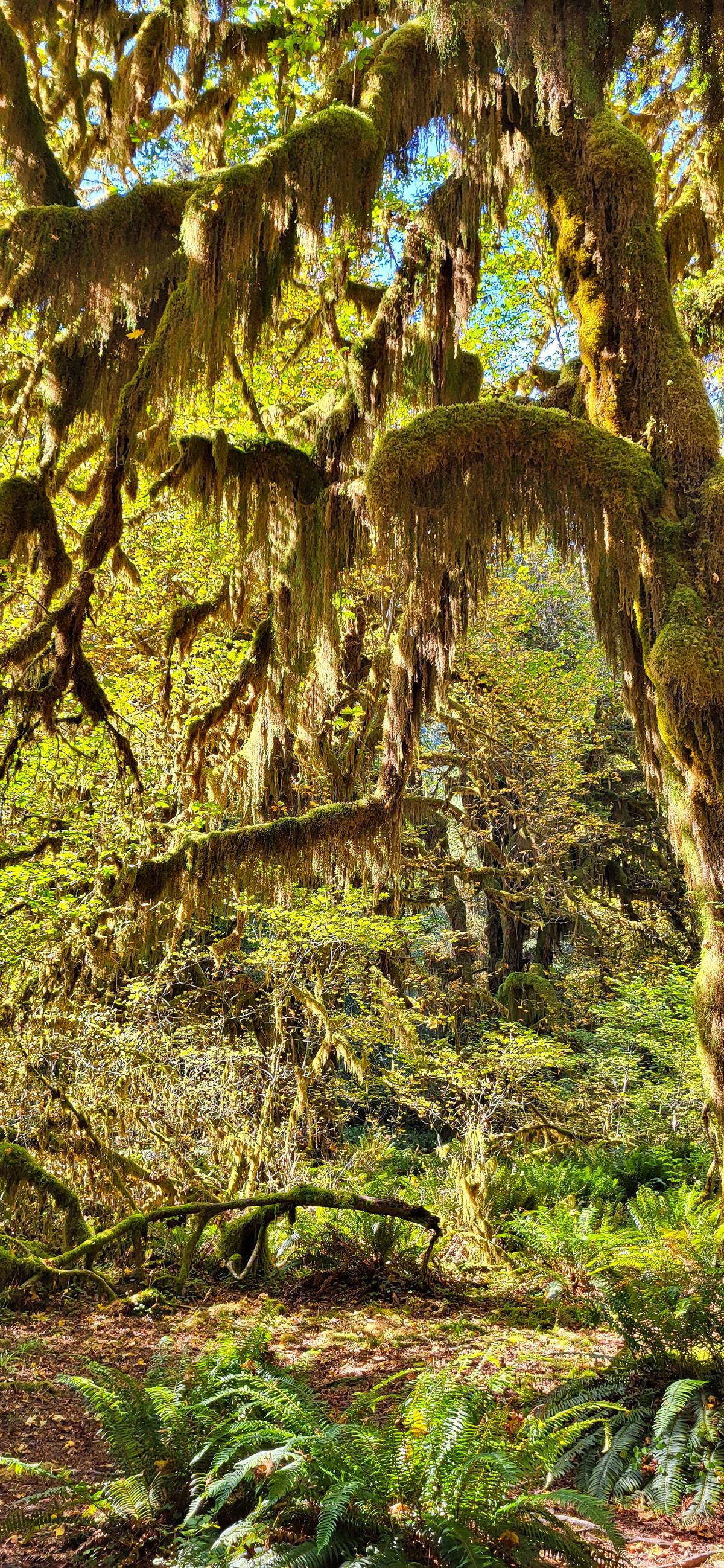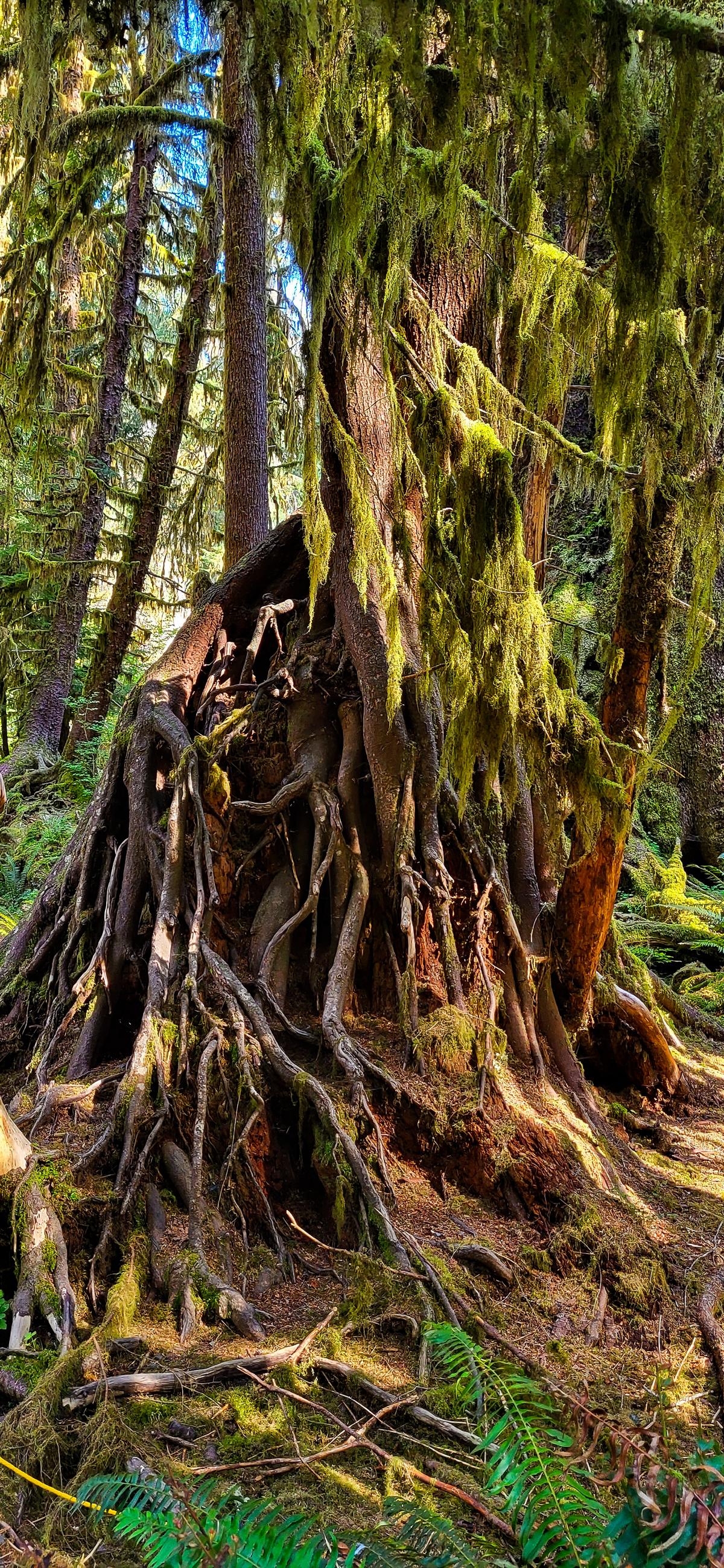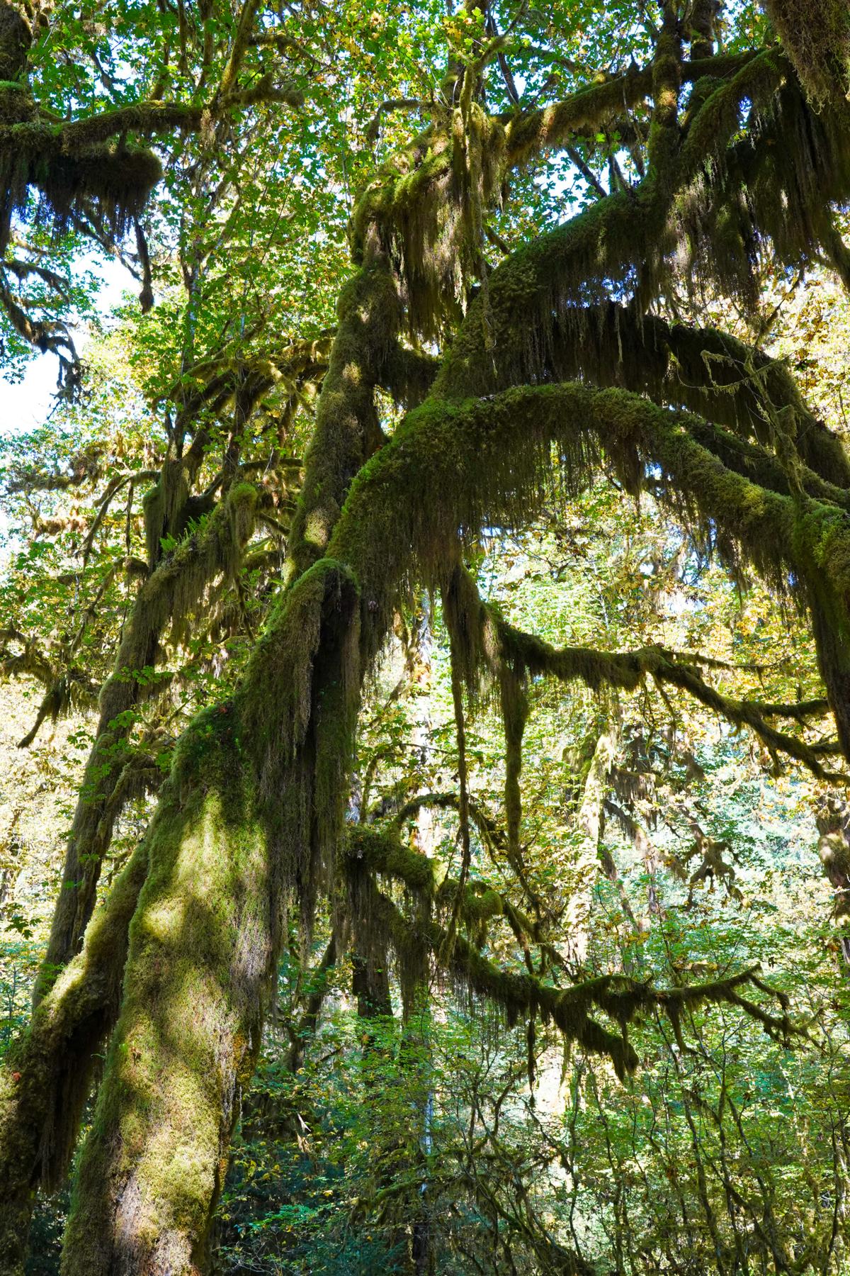 Auf dem Weg zum Eingang des „Hoh Rain Forest“ sind wir durch eine kleine, nette Stadt namens „Forks“ gekommen. Dort gab es einen größeren Laden, in dem ich nach einer Wärmflasche gesucht habe, da der Hexenschuss mich immer noch fest im Griff hatte. Vielleicht lag es auch daran, dass es eine Weile gedauert hat, bis mir die ganzen T-Shirts und Souvenirs mit dem Twilight-Logo aufgefallen sind. Aber der Groschen ist immer noch nicht gefallen. Ich hatte immer noch Bilder von „Twin Peaks“ im Kopf und habe mich gewundert, dass hier immer noch Werbung mit so einer alten Serie gemacht wird. Erst als wir dann im Park waren und ich die hohen Bäume gesehen habe, ist es mir wie Schuppen von den Augen gefallen: Edward und Bella, die riesige Vampir-, Werwolf- und Mensch-Liebesgeschichte, die einen regelrechten Vampir-Hype ausgelöst hat. Ich glaube, kein Teenager zwischen 2008 und 2010 hat die Bücher (drei) nicht gelesen oder die Filme (vier) nicht gesehen. Die ganze Geschichte wurde in Forks geschrieben, spielt in Forks und wurde in Forks gedreht. Sehr peinlich, aber in Liebesgeschichten bin ich halt ein Banause.