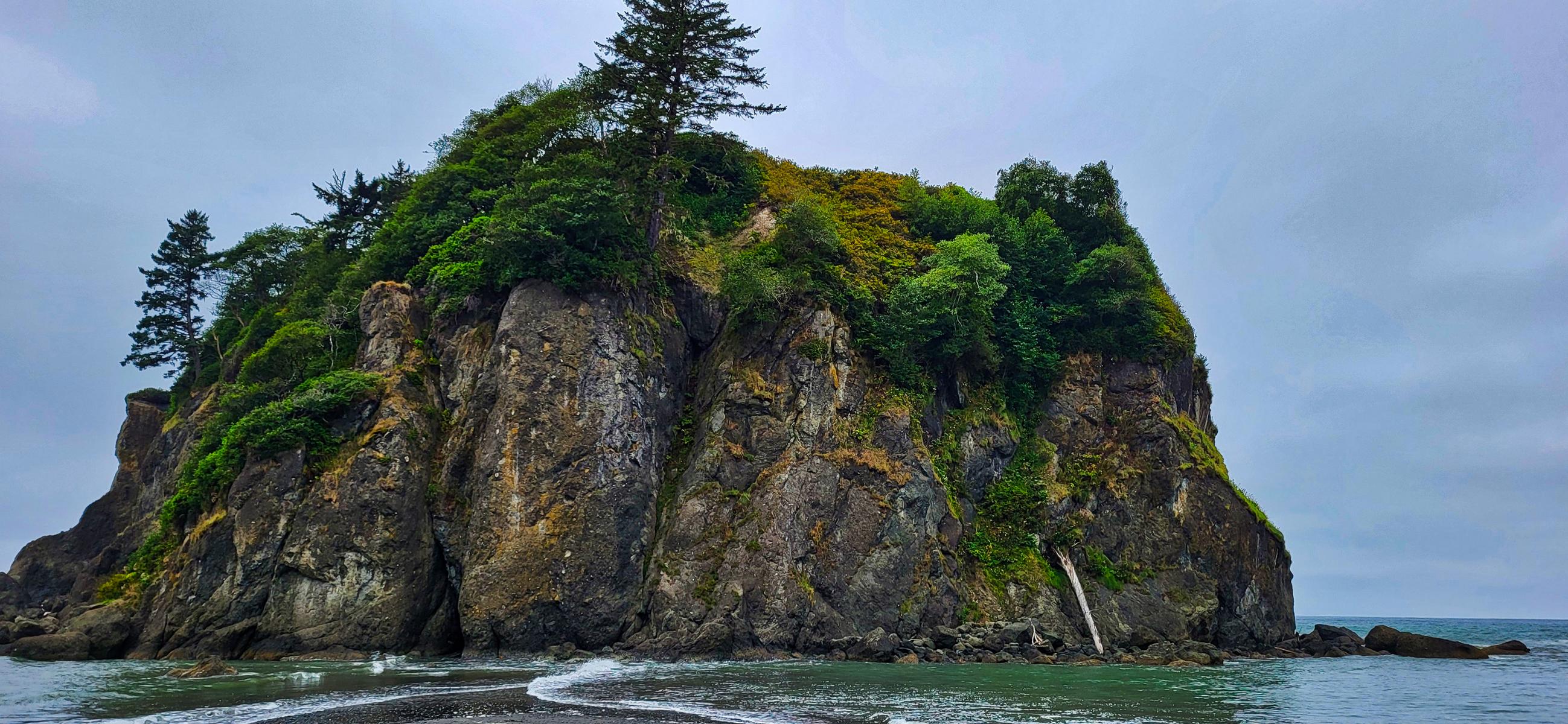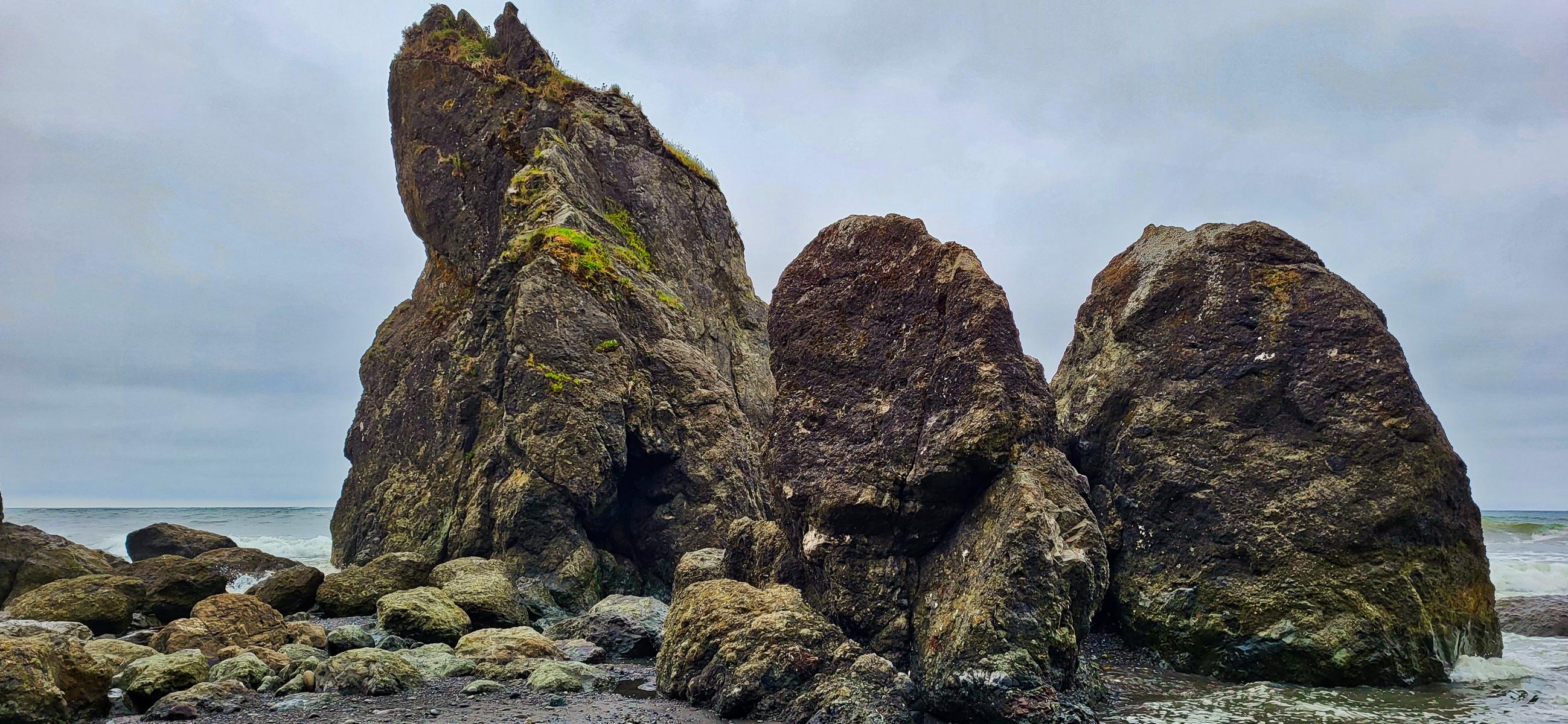 Damit ist der Olympic National Park aber noch nicht zu Ende, denn es gibt ja noch den Pazifik. Am Meer liegen viele Aussichtspunkte und Strände, die ein geschützter Teil des Parks sind. Wir waren am „Ruby Beach“. Wieder einmal hat uns der Wettergott keinen blauen Himmel am Pazifik beschert. Ich bin mal gespannt, ob es in Mexiko auch regnet, wenn wir am Pazifik sind. Ich rechne fast damit.