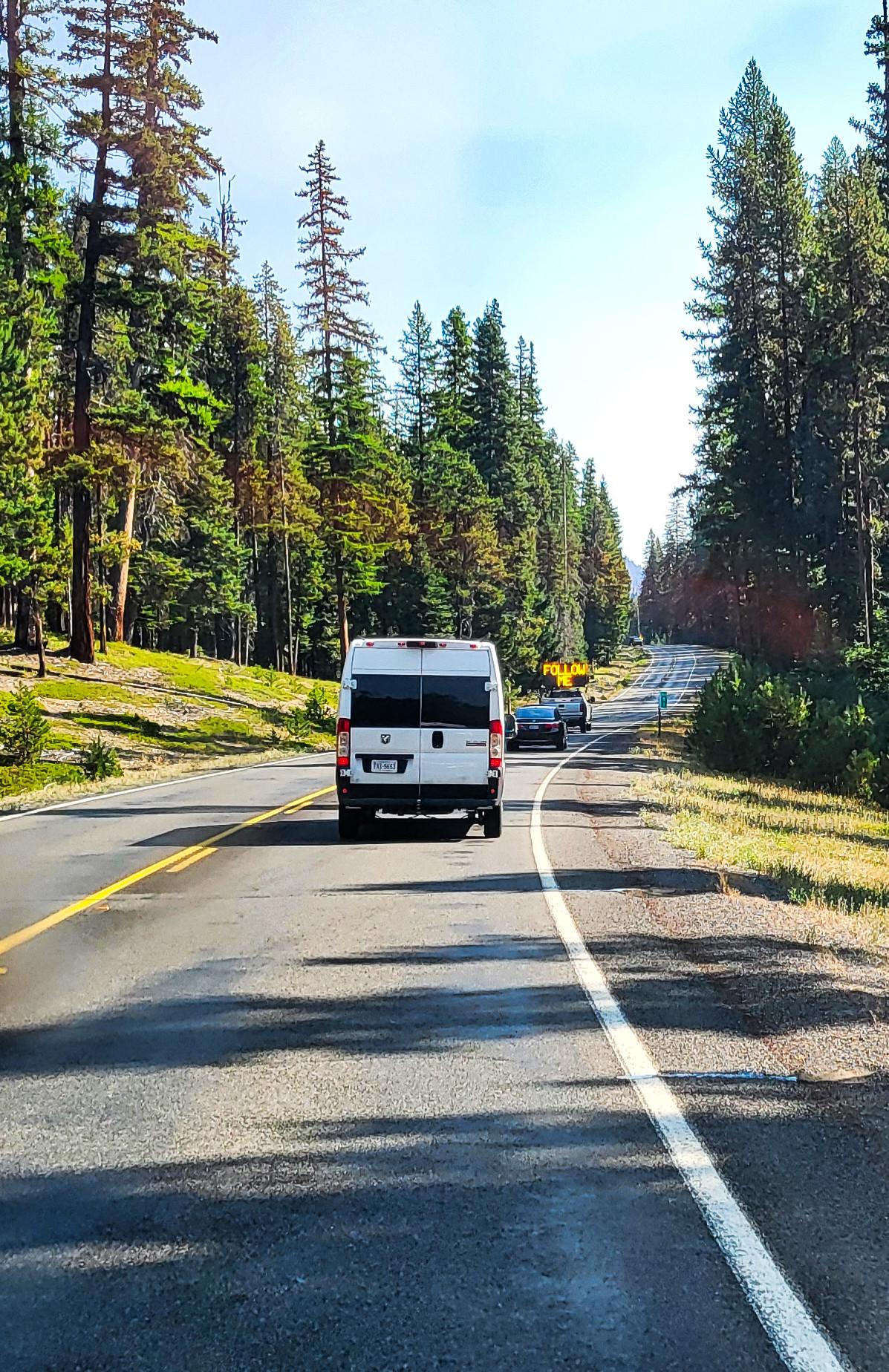 Baustellen, die nur einspurig befahren werden können, werden in den USA wie auch in Kanada oft mit einem Pilot Car geregelt. Man muss also warten, bis der „Follow Me“ losfährt, und dann darf man hinterherfahren.