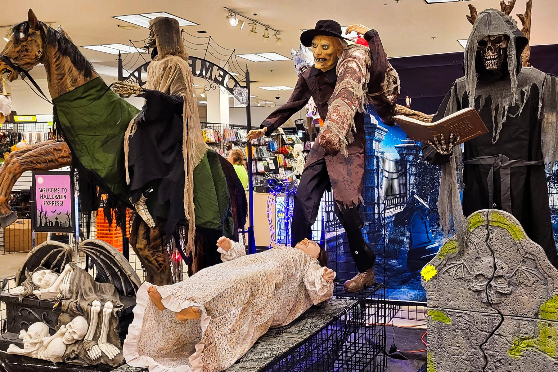Dafür wurde in Spokane sehr schnell klar, dass nicht nur bei uns ab Ende August die Lebkuchen in den Läden liegen. Ab dem 1. September (erster Schultag nach den Ferien) ist es Halloween. Bei 30 Grad auf dem Parkplatz wurde hier schon der erste Halloween-Großverkauf organisiert. Eltern und Kinder kamen in Strömen in das Geschäft.