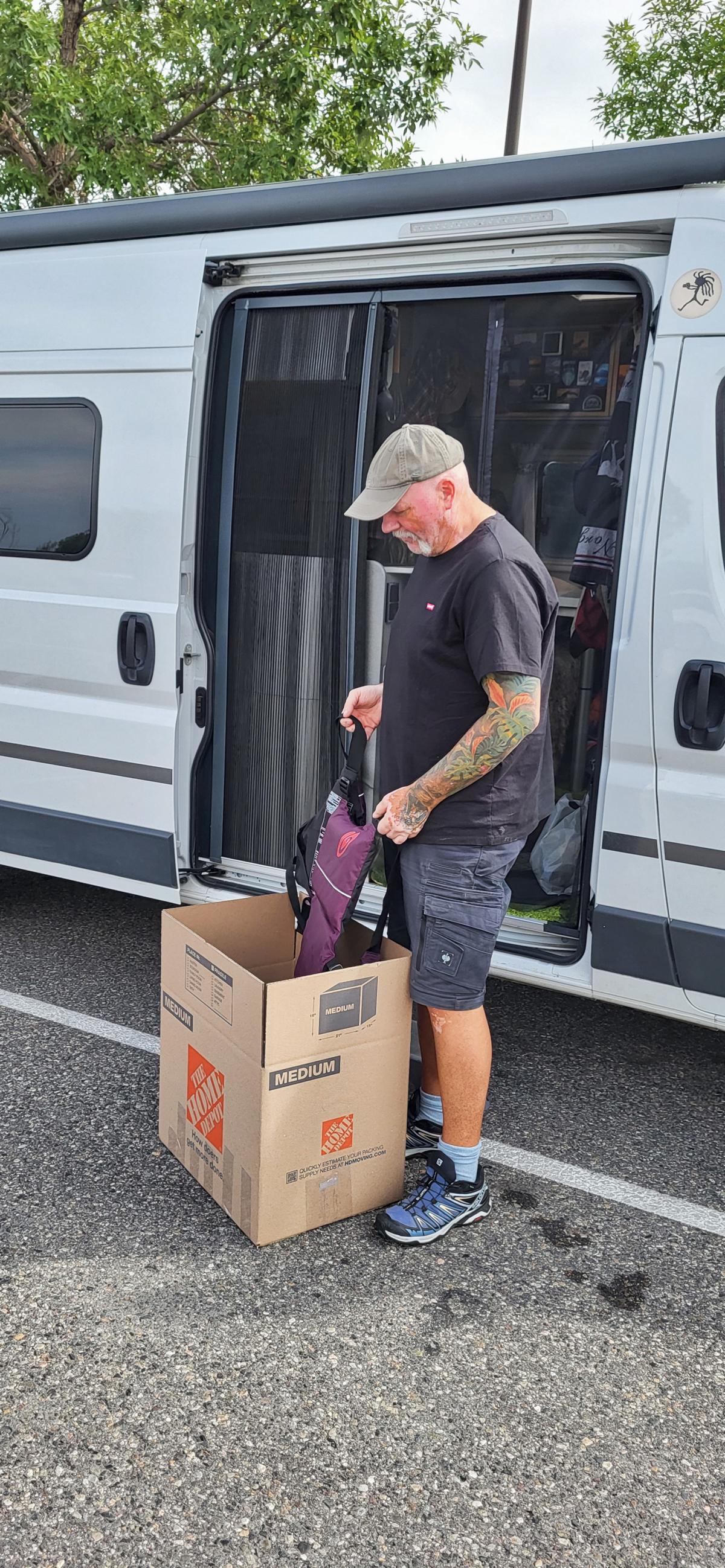 Da es nun immer weiter nach Süden geht, haben wir zwischendurch ein Paket mit all den warmen Pullis und Fleece-Klamotten gepackt.