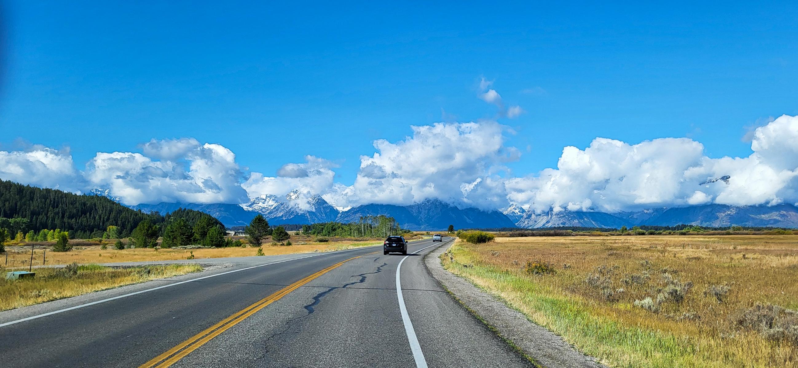 $80,- ärmer, aber ausgeruht, frisch geduscht und mit gefüllter Gasflasche, sind wir am nächsten Morgen in den Grand Teton hineingefahren. Anfangs war ich etwas überrascht, denn alle Bilder, die ich bisher gesehen habe, zeigten hohe, felsige Bergspitzen. Davon habe ich erst mal nichts gesehen.