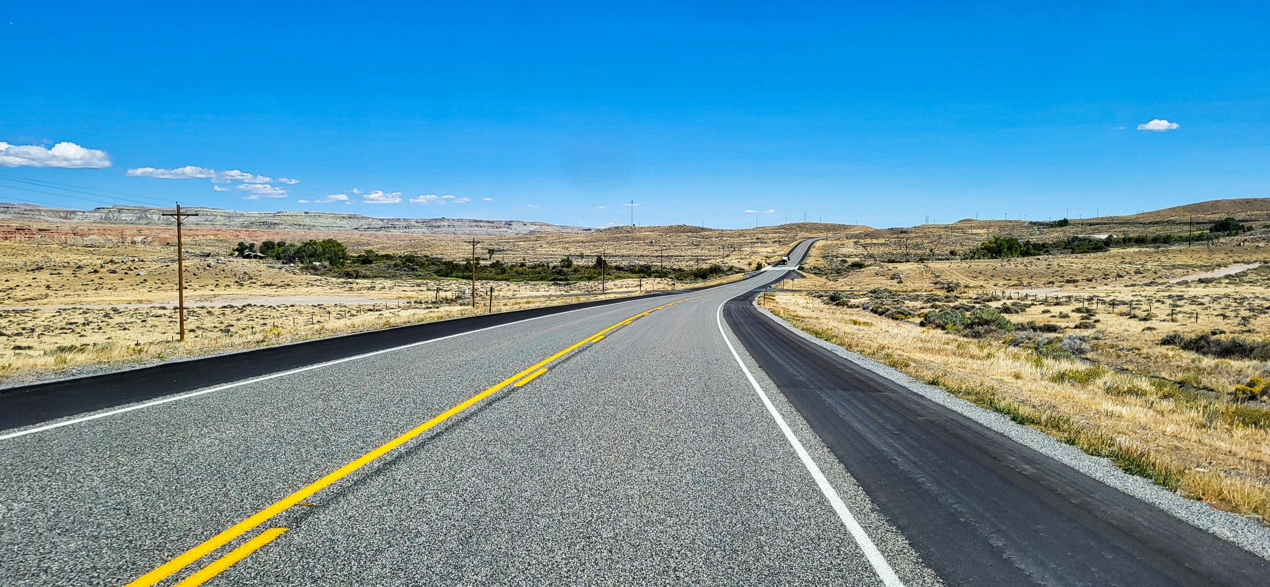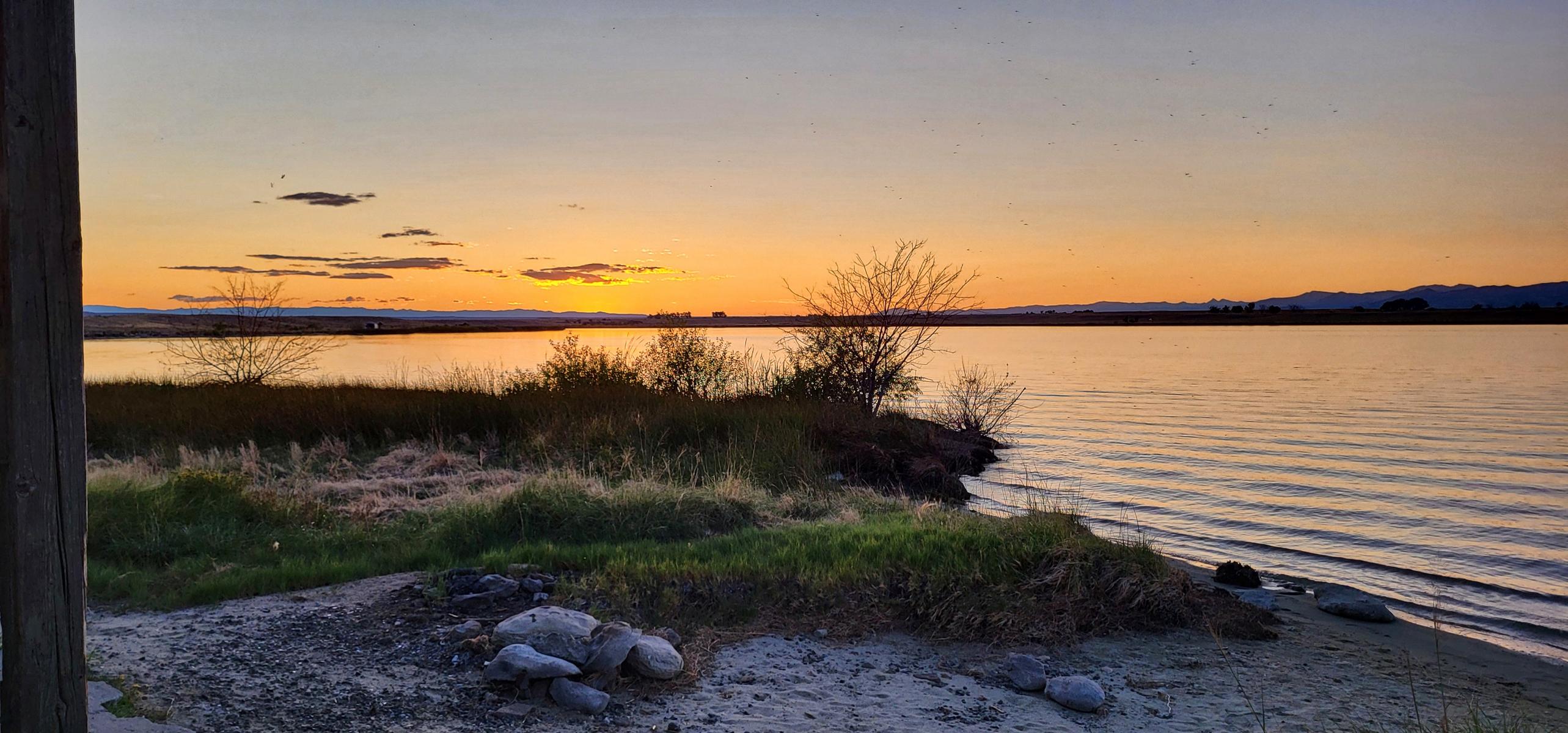 So langsam wurden die Berge zu Hügeln und dann zu weiten, geschwungenen Ebenen. Wir waren in Wyoming angekommen. Die endlosen Weiden und die schwarzen Rinder (Black Angus) machen schnell klar, dass Wyoming Farmland ist: flach, endlos, extrem heiß im Sommer und kalt mit viel Schnee im Winter. Die Regierung legt auch hier kleinere und größere Stauseen an. Das Wasser ist die Grundabsicherung der Farmen im Sommer. Wenn die Regierung so einen See anlegt, werden auch rund um den See „Recreation Areas“ angelegt, damit die Menschen diese auch in der Freizeit nutzen können, nicht nur zur Bewässerung. Der Platz, an dem wir übernachtet haben, hatte einen Picknicktisch, einen festen Grill und für Schatten auch eine Überdachung. An jeder der gekennzeichneten Areas gibt es ein bis zwei Plumpsklos, damit auch das „Geschäft“ geregelt ist. Auf dem See, der mit Fischen bestückt wird, darf man Motorboot fahren und angeln. Außer die Angellizenz kostet das alles nichts.