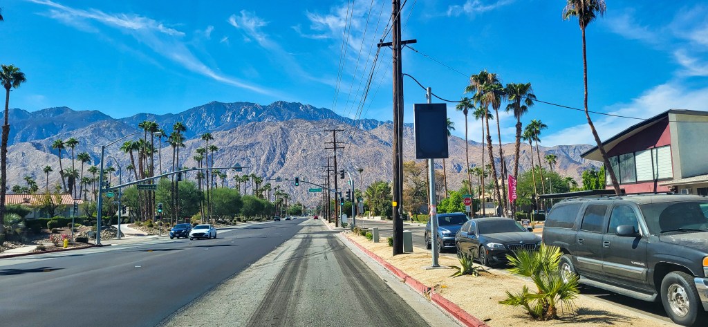 Nicht zu verwechseln mit Palm Springs in Florida, ist es trotzdem eine Oase der Reichen und Schönen inmitten der Wüste. Die „Billboards“ (Werbeplakate) waren hauptsächlich mit Zahnärzten und Schönheitschirurgen bestückt. Angeblich war es einer der Lieblingsorte von Marilyn Monroe, die hier überlebensgroß verewigt wurde.