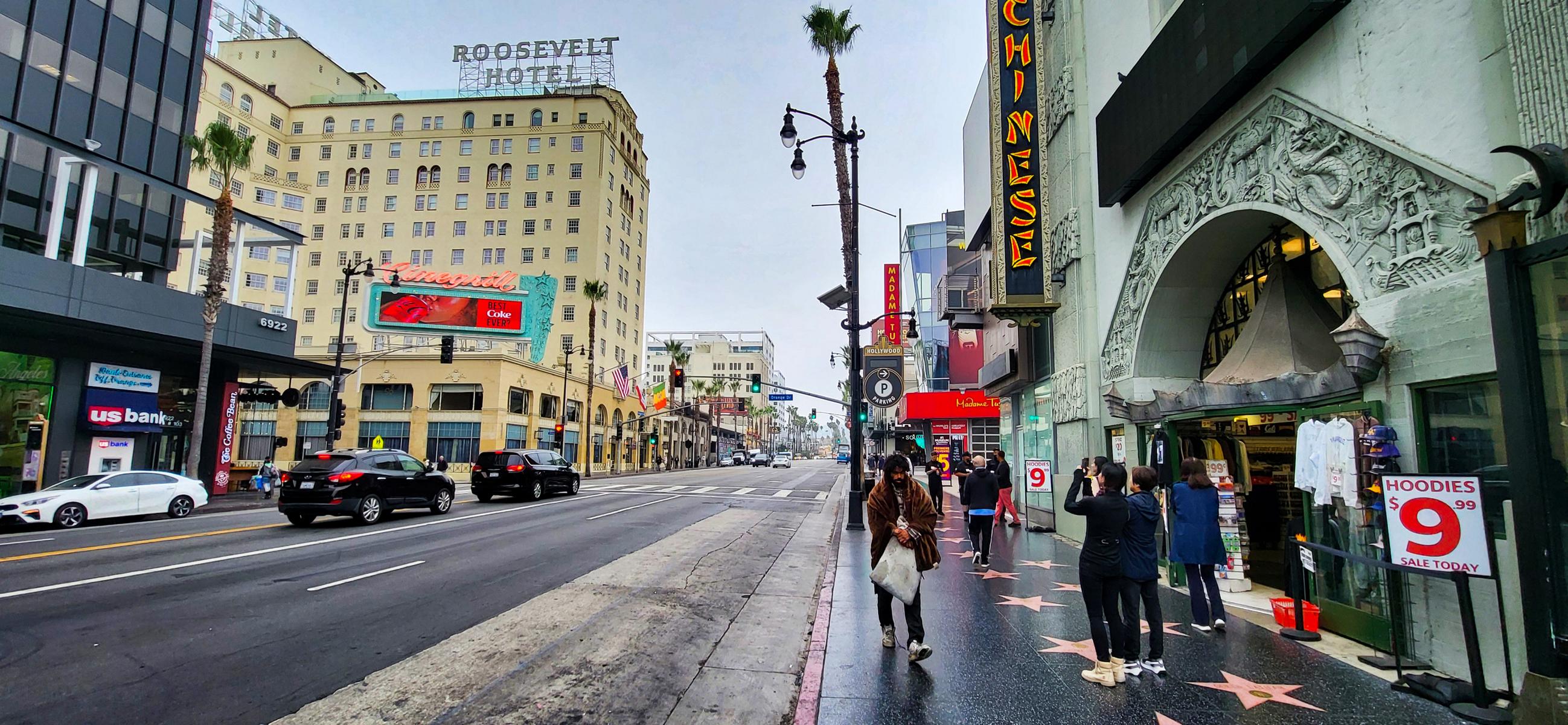 Vielleicht hätten wir abends gehen sollen, wenn die Beleuchtung die schmuddeligen Ecken überdeckt – aber so war ich schlichtweg enttäuscht. Die Sterne waren zwar da, auf dem Walk of Fame, aber die Straße und der Gehweg waren dreckig und klebrig. Seit Tagen hatte hier offenbar niemand mehr den Müll weggekehrt.