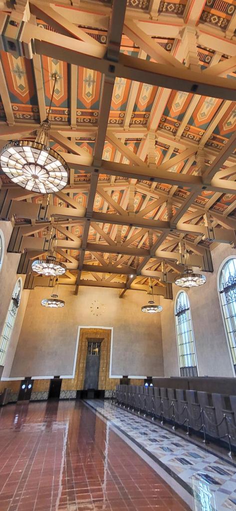 Der ganze Bau mit seinen Art-Déco-Kunstelementen hat mich sehr an den Flughafen Tempelhof erinnert. Zum einen ist es die gleiche Stilrichtung in der Kunst und Architektur, zum anderen wurde gebaut und designt, um zu beeindrucken. Das kann man sehen. Die Fahrstuhltüren (kein Foto, weil zu viele Menschen davor stehen), der Außenbereich und die Bodenornamente, die Motive aus der indigenen Kunst enthalten, sprechen ihre eigene Sprache.