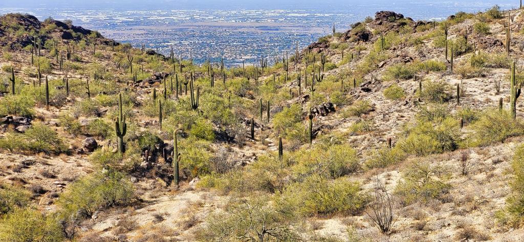 Auf der riesigen Ebene, in der die Stadt liegt, gibt es immer wieder Berge, die wie Inseln aus dem Stadtmeer herausragen. Die Berge sind meist unbesiedelt und zu Naherholungsgebieten und Stadtparks umgestaltet worden. Hier sind ein paar Ausblicke über Phoenix.