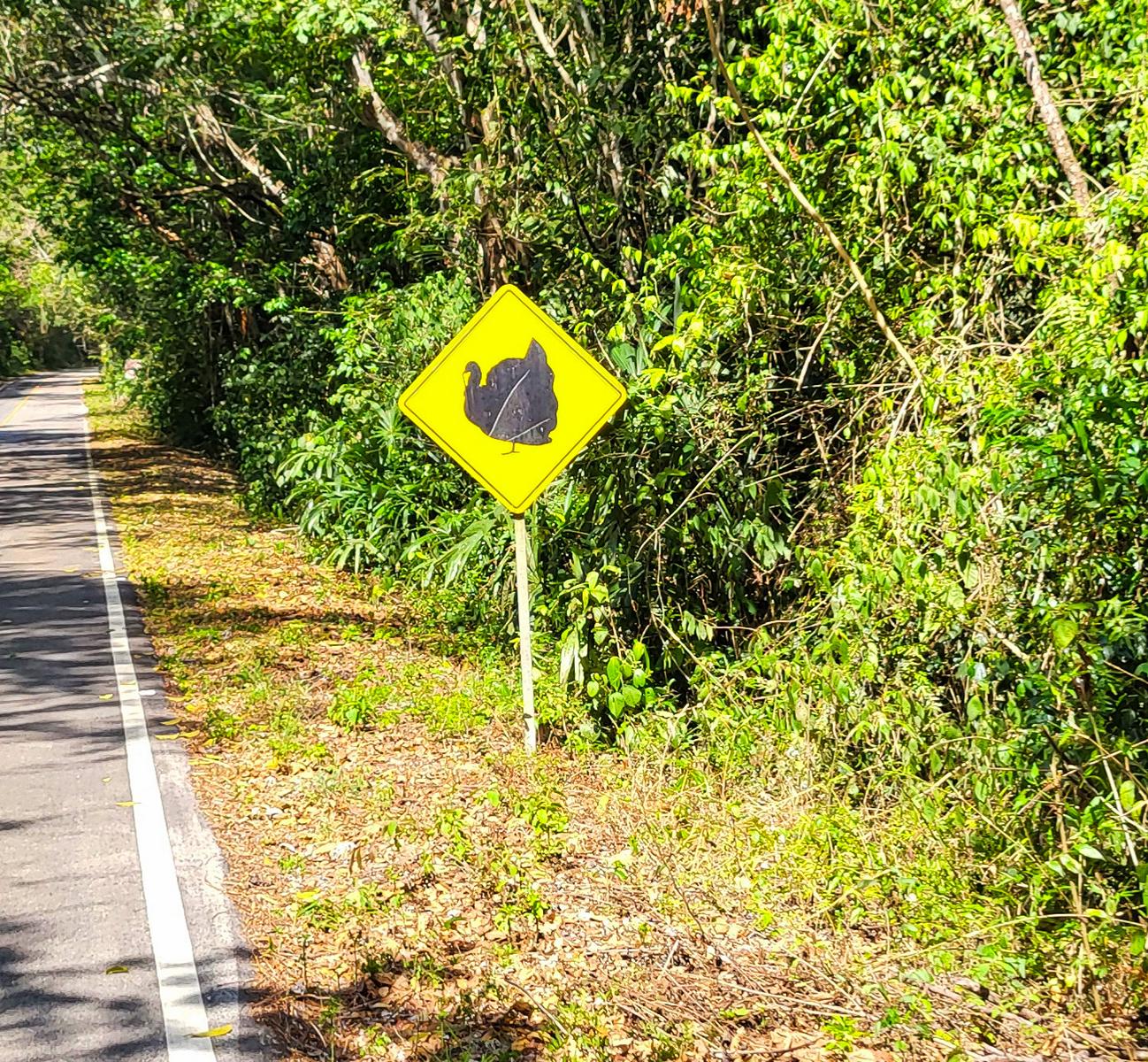 Die Warn- und Hinweisschilder an den Straßen haben zumindest ein wenig für die verpassten Wildlife-Begegnungen entschädigt. So wussten wir immerhin, was wir verpasst hatten.