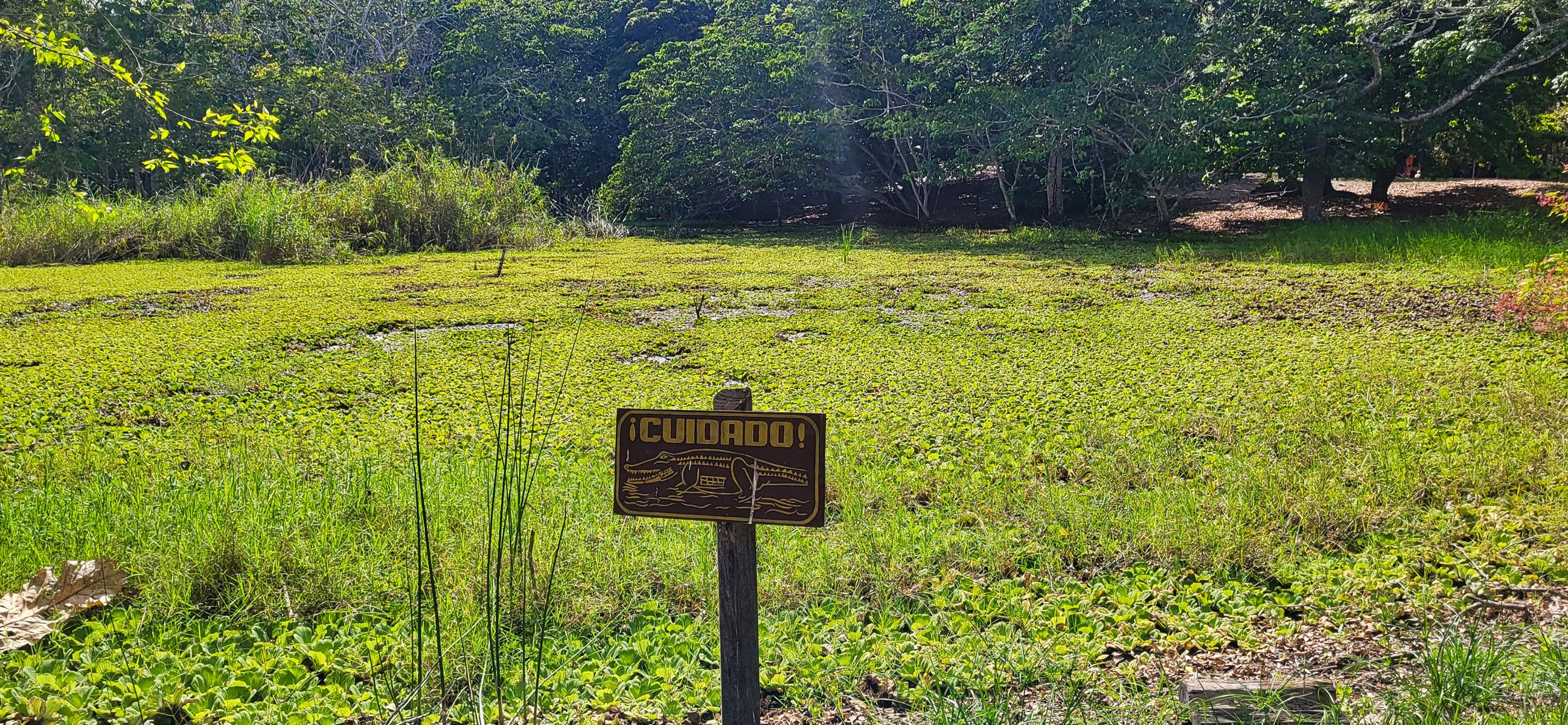 Schon die ersten Schritte waren beeindruckend. Leider hatte es noch nicht genug geregnet, und der „Aguada del Crocodilo“ war mehr Sumpf als See – Krokodile ließen sich keine blicken. Suchen wollte ich auch nicht, zu viele Zähne. Dafür fanden sich überall auf den Wegen Spuren von Affenfrühstück. Selbst die Toilettenhäuschen und Picknickplätze sind so angelegt, dass sie sich geschmeidig in das historische Umfeld einfügen.