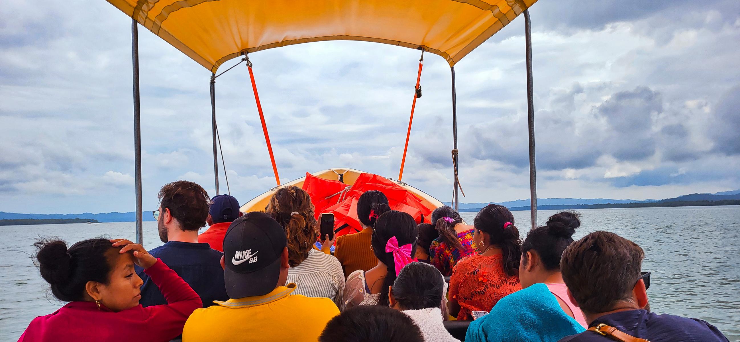 Während der Fahrt lieferten wir noch ein Paket an eine ältere Segelyacht und setzten ein paar Kinder an der Schule ab, die wir am Nachmittag wieder abholten. In Guatemala gilt Schulpflicht für jedes Kind: Mindestens sechs Jahre Schule muss jeder absolviert haben. In jedem kleinen Dorf gibt es deshalb eine Kirche und eine Schule.