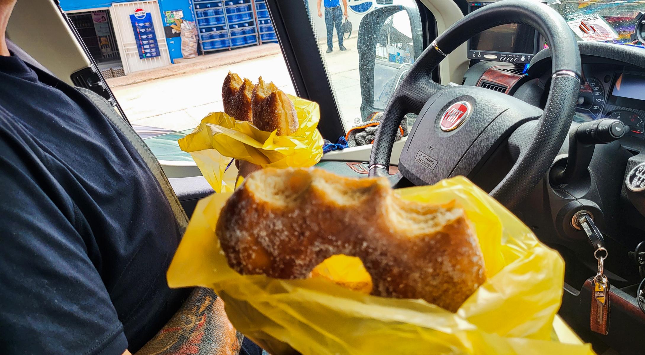 Honduras investiert derzeit viel Geld in den Ausbau der Straßen. Je näher man der Hauptstadt kommt, desto mehr Baustellen gibt es. Die logische Konsequenz: In Tegucigalpa standen wir an einer Großbaustelle lange im Stau. Ein Hoch auf die Straßenhändler, die frische Backwaren an die wartenden Autofahrer verkauften – Krapfen mit Zucker, noch warm und sehr lecker.