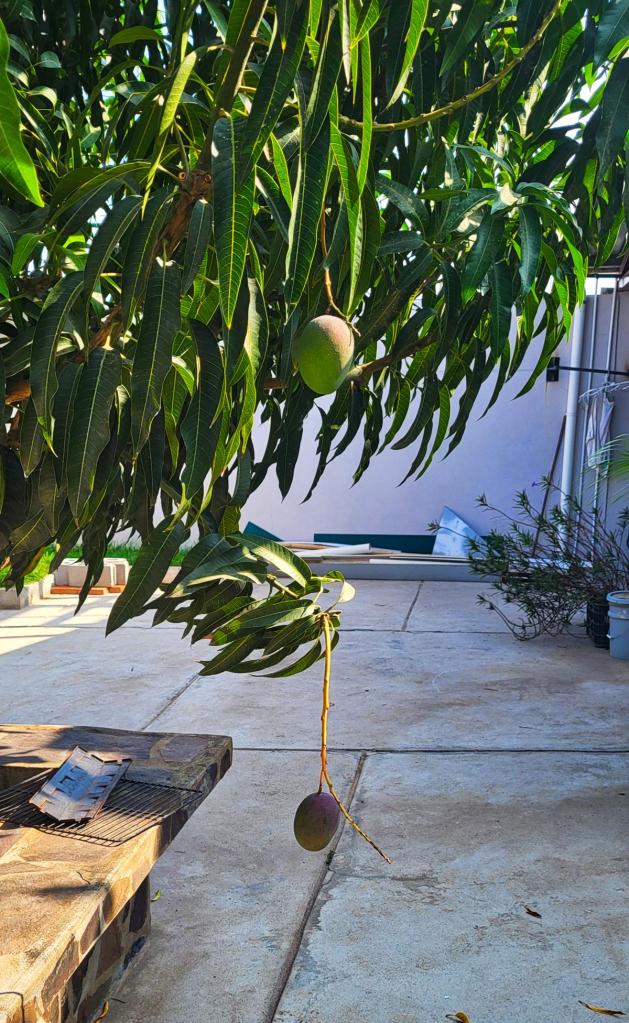 Unsere erste Nacht verbrachten wir in einer Bed-&-Breakfast-Pension, die einen Innenhof mit Mangobaum hatte. Die Gästezimmer lagen zur Straßenseite hinaus, und beim Fotografieren fiel uns gleich das nächste Hotel ins Auge: „Brunnen der Leidenschaft – Fuente de Pasión“.