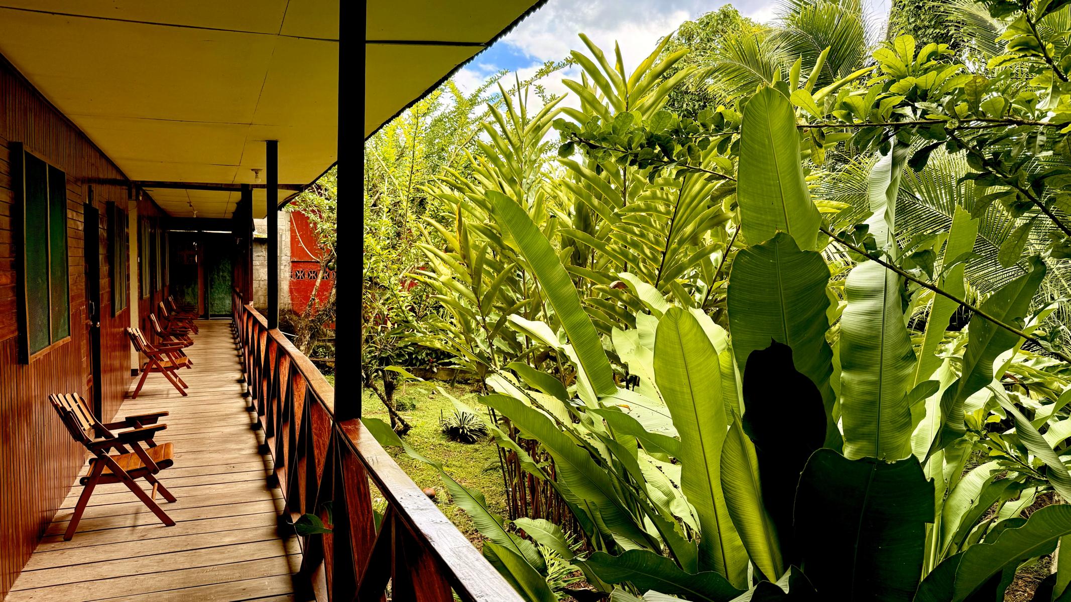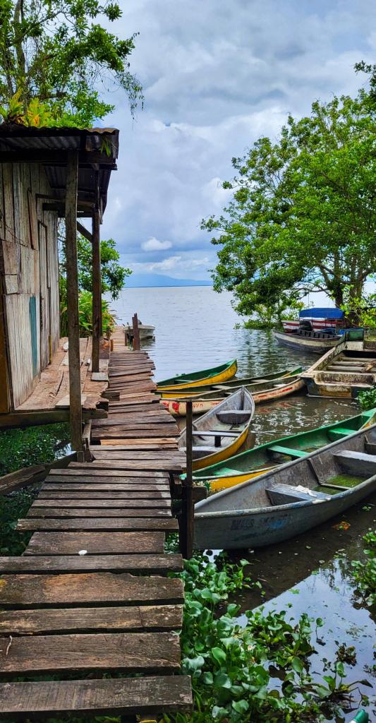 Unsere letzte Nacht in Nicaragua verbrachten wir in einer Pension direkt am See. Es war ein Holzhaus auf Stelzen, falls der Wasserspiegel steigt, umgeben von einem Dschungelgarten. Die Bodendielen hatten zentimeterbreite Ritzen, und die Besitzerin meinte, wir sollten nachts das Licht nicht einschalten, damit die Moskitos nicht hereinkommen. Wundersamerweise habe ich aber den Nachmittag auf der Veranda und auch die Nacht ohne einen Stich überlebt.