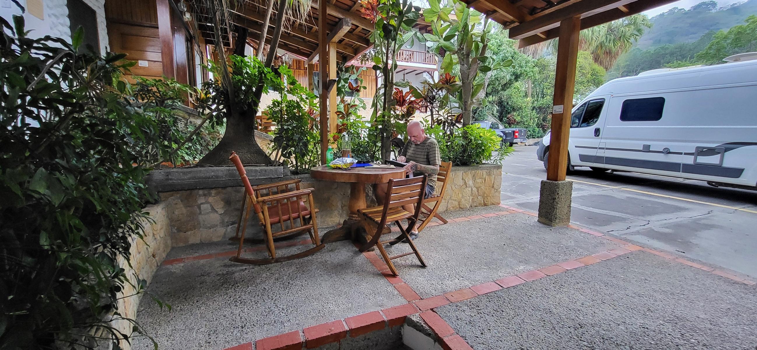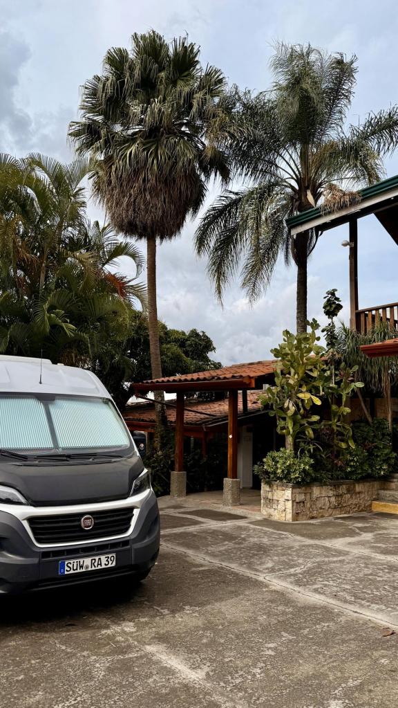 Bevor wir jedoch zu Nicaragua kommen, möchte ich noch eine Geschichte zu unserem Hotel in dieser Nacht erzählen. In Google Maps und in iOverlander war es mit einem vernünftigen Preis und sauberen Zimmern inklusive Klimaanlage beschrieben – also eigentlich perfekt für uns. Vor Ort fanden wir es allerdings seltsam, dass es schlicht eine Reihe von Garagen war, über denen im ersten Stock jeweils ein Zimmer lag. Die Señora an der „Rezeption“ beziehungsweise Putzkammer war erstaunt, dass wir die Nacht bleiben wollten, und fing an, die Stunden an ihren Fingern abzuzählen. Schließlich gab sie auf und rief ihren Chef an. Nachdem der Preis von 20 US-Dollar geklärt war, zeigte sie uns unser Zimmer. Zugang war nur durch das offene Garagentor und über die Stufen hinauf zum Zimmer möglich. Unser Ducato passte zwar nicht in die Garage, stand aber im abgeschlossenen Hof.