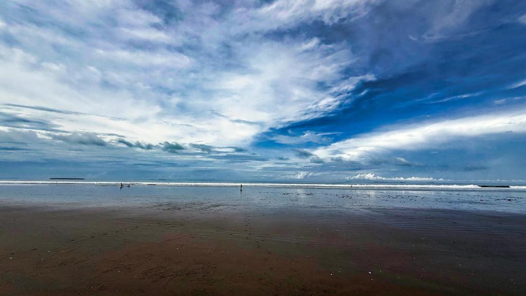 Womit wir schlicht nicht gerechnet hatten, waren die Auswirkungen der Regenzeit. Unser Verständnis davon war: „Es regnet halt.“ Aber weit gefehlt: Es war stürmisch, der Strand lag voller Algen, die der Wind angespült hatte, und Himmel sowie Wasser waren grau und aufgewühlt. Was uns aber endgültig die Lust verdarb, waren die Sandflöhe. Obwohl der Besitzer jeden zweiten Tag sprühte, waren die Biester nicht auszuhalten. Bei der Hitze und der hohen Luftfeuchtigkeit konnten wir die Fenster nicht einfach geschlossen halten (Prinzip Backofen), und das Moskitonetz war für die Viecher schlicht zu grobmaschig.