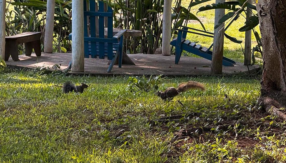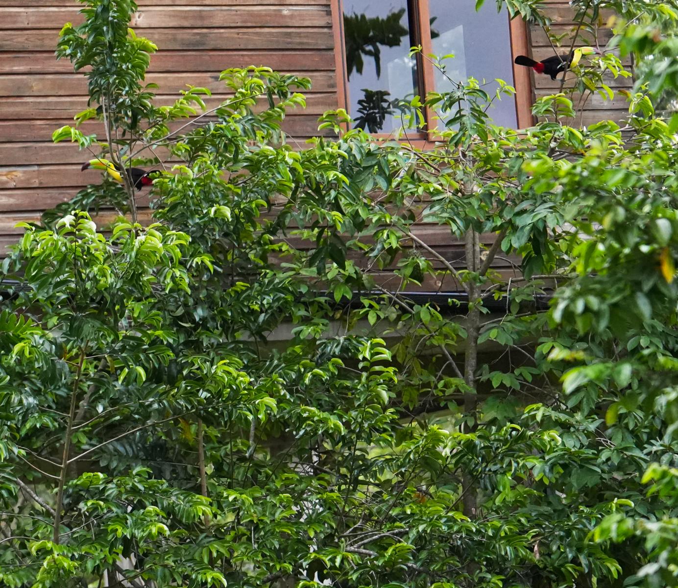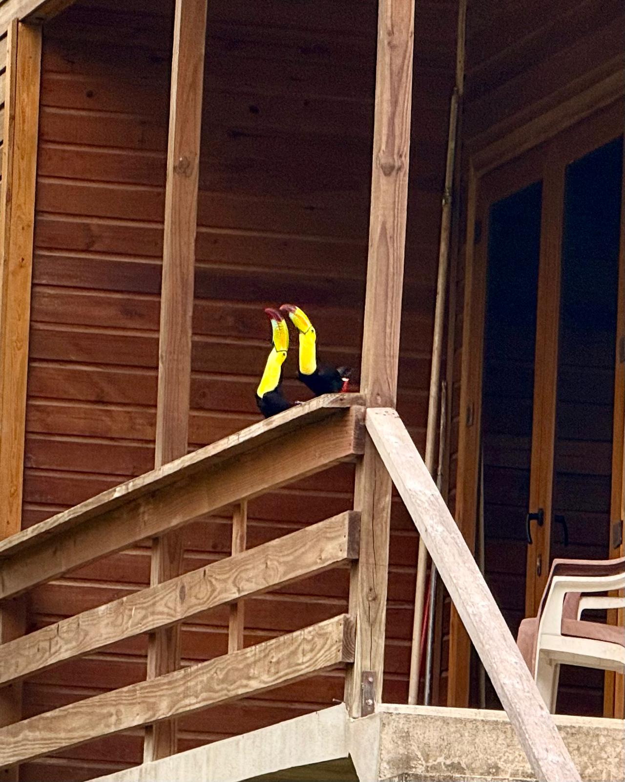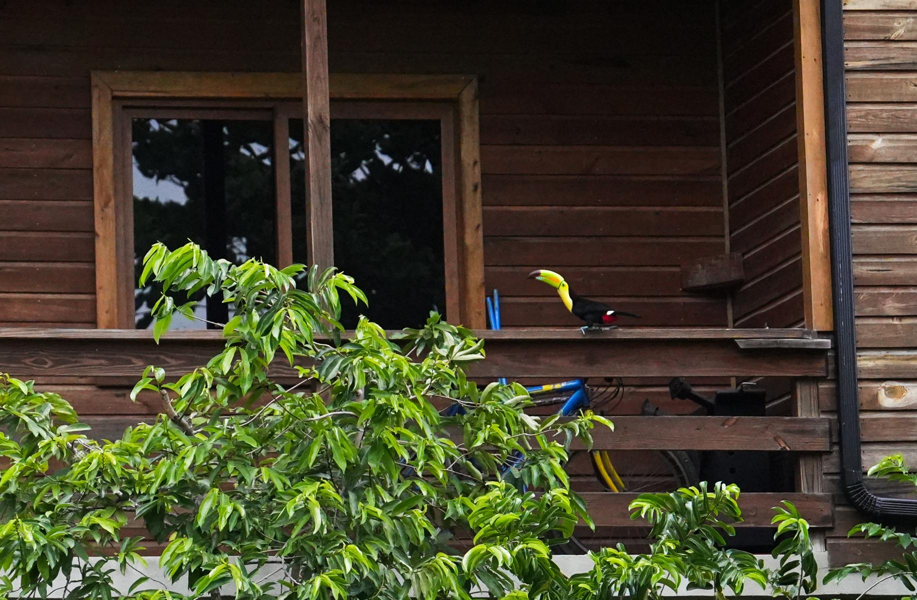 Nach einem Tag stellten wir fest, dass nicht nur Menschen den Campingplatz genossen, sondern auch eine ganze Reihe von tierischen Besuchern. Besonders die beiden Tukane, die sich jeden Morgen in den Fensterscheiben des Hauses betrachteten, bereiteten uns viel Freude. Leider waren wir nicht schnell genug, um auch die Cuy (Riesenmeerschweine) zu fotografieren, bevor sie wieder verschwanden.
