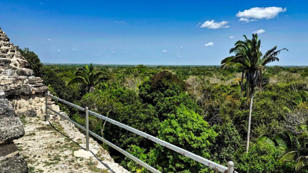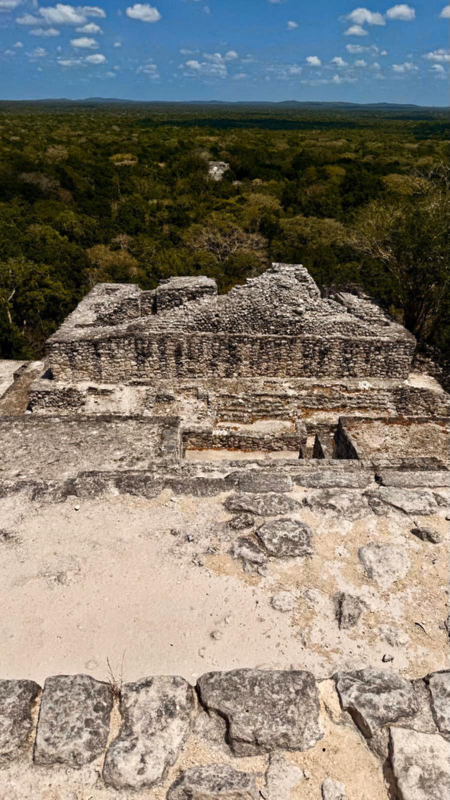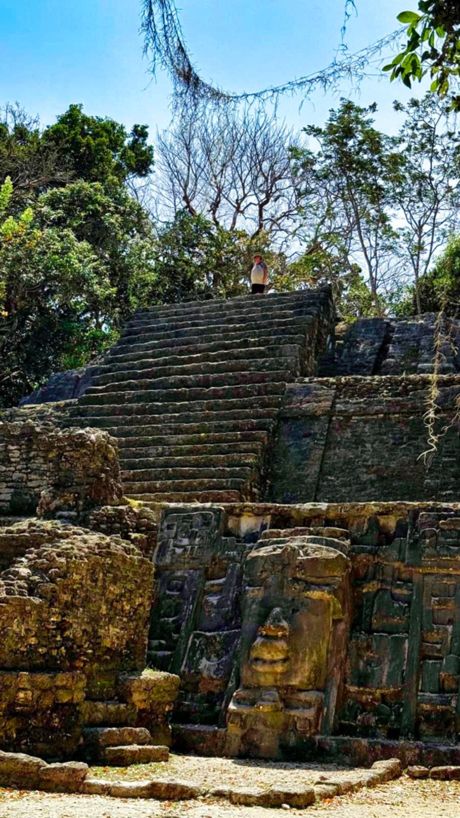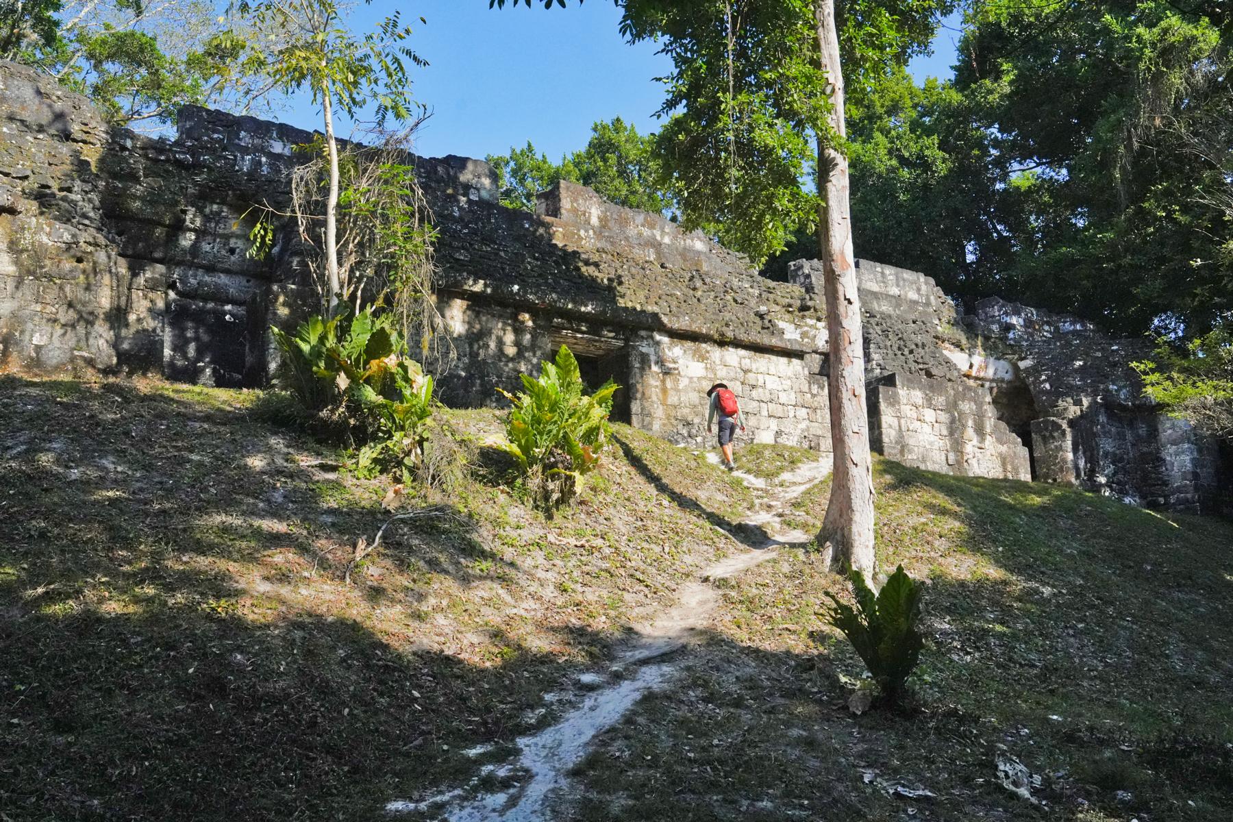 Von den höheren Pyramiden und Tempeln hat man einen unglaublichen Rundblick – nichts als Dschungel und Wildnis. Bei gutem Wetter und mit einem Fernglas kann man sogar die Spitze der Pyramide von Calakmul in Mexiko sehen. Ich habe es versucht, bin aber schon an der richtigen Himmelsrichtung gescheitert.
