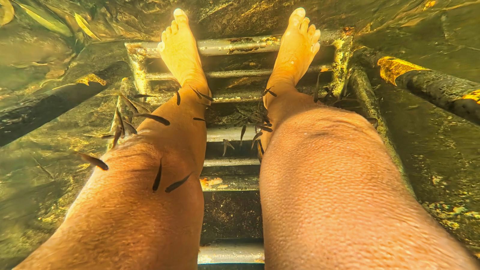 Die Wasserfälle waren gut mit Wegen und Treppen erschlossen, und das Wasser war kühl und sauber. Im Wasser treibend in den Dschungel hinaufzuschauen, war für mich fast mystisch. Nach und nach trudelten dann auch andere Badegäste ein, um die kühle Stille zu genießen. Es gab ein paar ganz normale Moskitos, die sich gut aushalten ließen. An den Leitern der Pools versammelten sich kleine Fische, die für ein echtes Spa-Erlebnis sorgten.