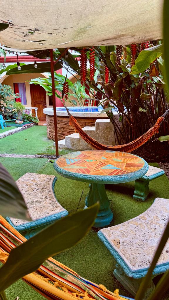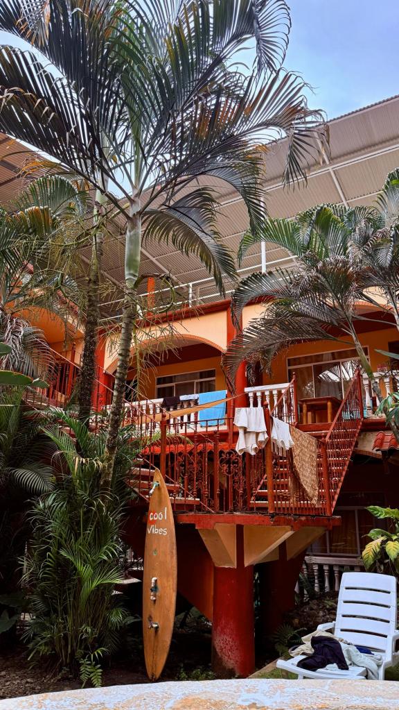 Unsere letzte Nacht in Costa Rica verbrachten wir in einem sehr typischen Surferhotel. Es war voll mit jungen Leuten, jung gebliebenen Späthippies und Menschen, die einfach nur ihre Ruhe haben wollten. Es gab eine Gemeinschaftsküche mit großem Herd und Kühlschrank – perfekt für alle, die länger bleiben und nicht ständig ins Restaurant gehen wollen. Trotzdem kostete die Nacht stolze 40 US-Dollar.