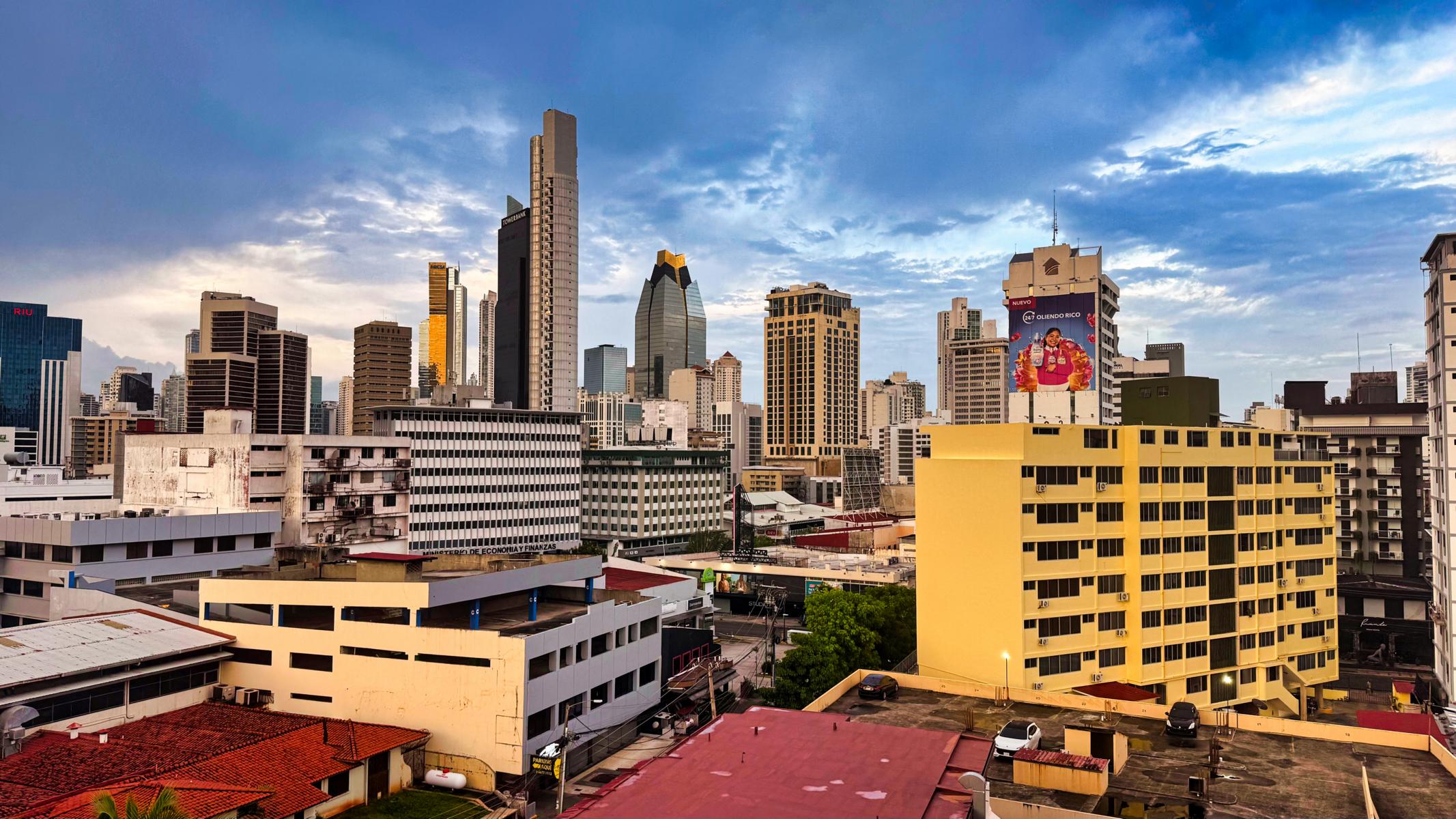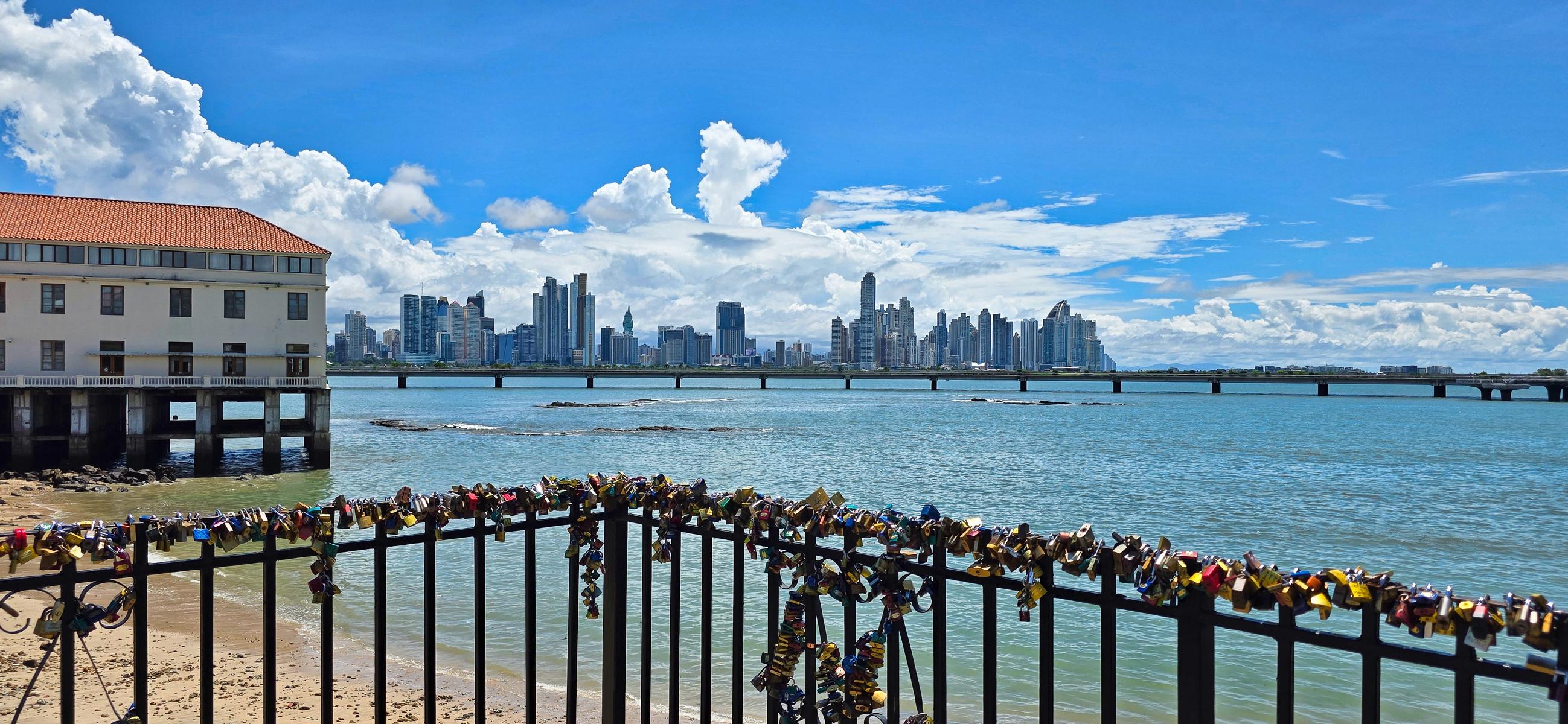 Der Blick mit der Altstadt im Rücken auf das moderne Panama.